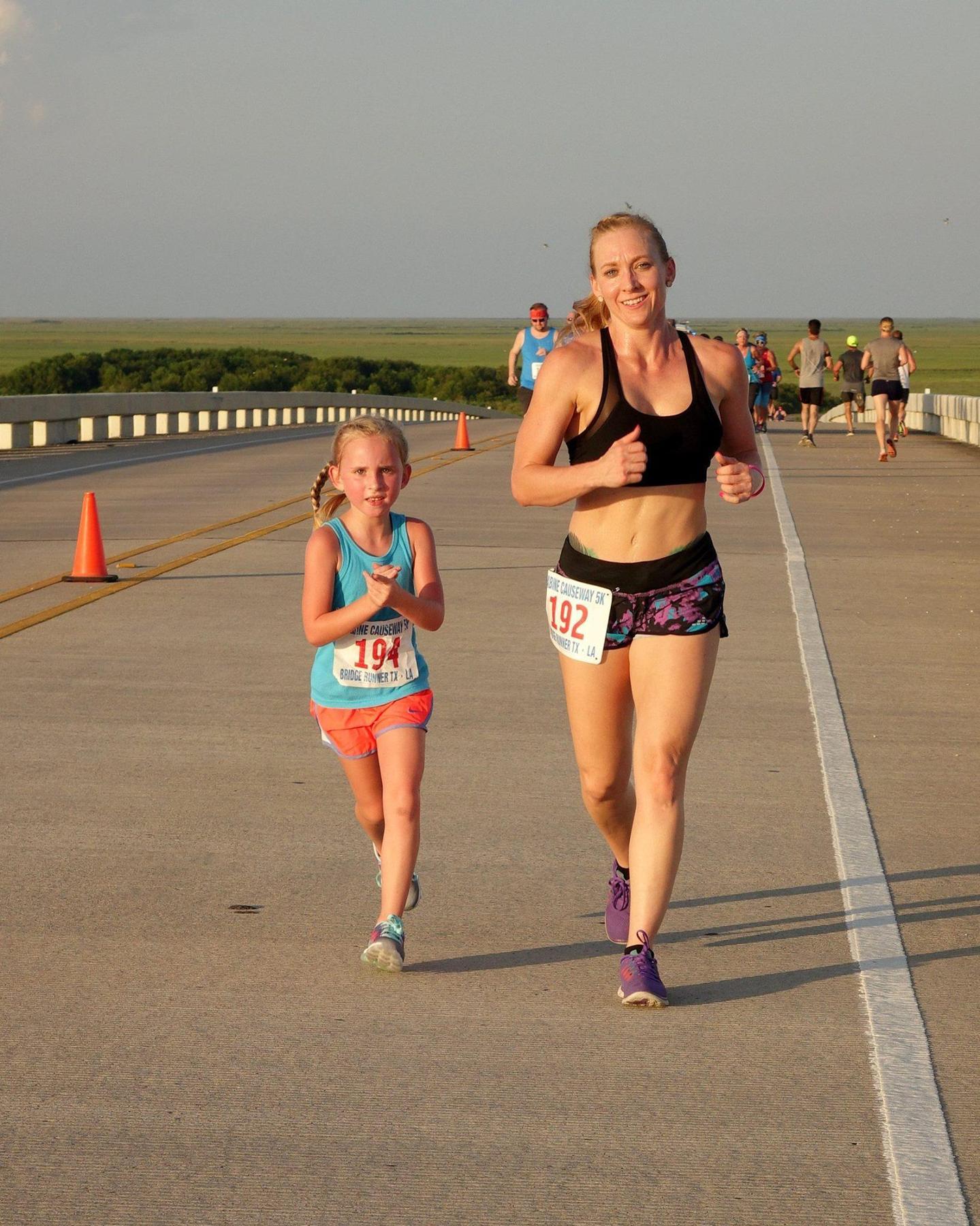 The entire 5K takes place on the causeway joining Louisiana to Texas! Runners and walkers start on the Texas side of the bridge, cross over to Louisiana, and return. Then repeat, making two trips. Complete the course and claim the status of running from Texas to Louisiana and back!